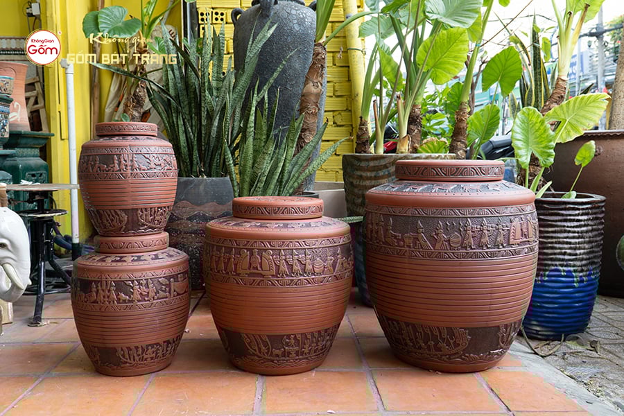 Mỗi sản phẩm đều mang đặc điểm độc đáo riêng, vì tất cả các họa tiết trên từng hũ gạo, vò rượu này đều được điêu khắc hoàn toàn bằng tay bởi những nghệ nhân hàng đầu từ làng gốm Bát Tràng.Có thể nói mỗi chiếc chum vò hay hũ gạo hành phẩm đều là sản phẩm "chỉ có một bản" chứ không đại trà như các sản phẩm in dán decal.